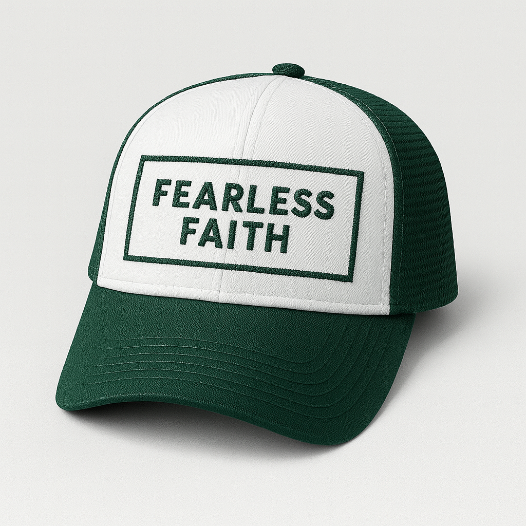 Fearless Faith Christian Trucker Hat | Bold Embroidered Faith Cap | Rooted South Threads